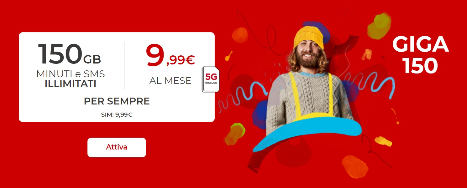 - 150 Giga di navigazione internet 4G/4G+ e 5G (Hotspot incluso)