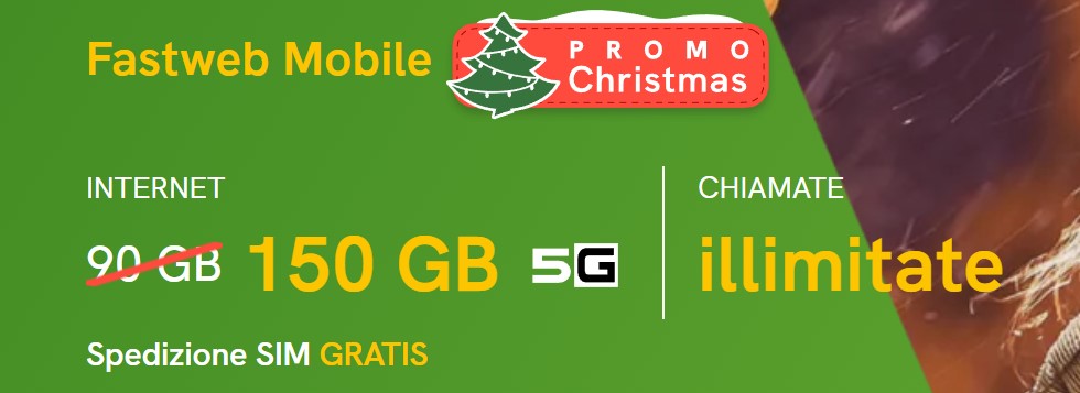 Nuova offerta Fastweb Mobile Promo Christmas 150 GB 5G attivabile fino al 31/1/2023.