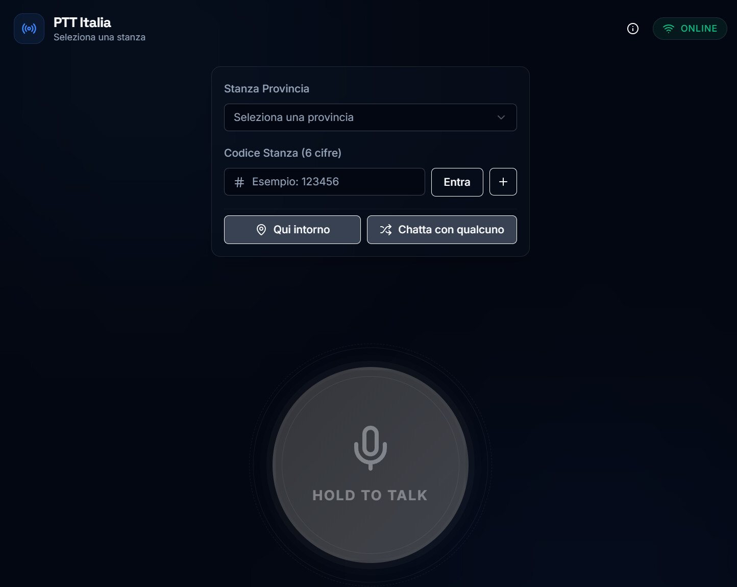 Il risultato è questo Push to Talk Italia, una sorta di walkie‑talkie digitale che permette di parlare in tempo reale con altre persone. Puoi provarlo direttamente qui sotto: