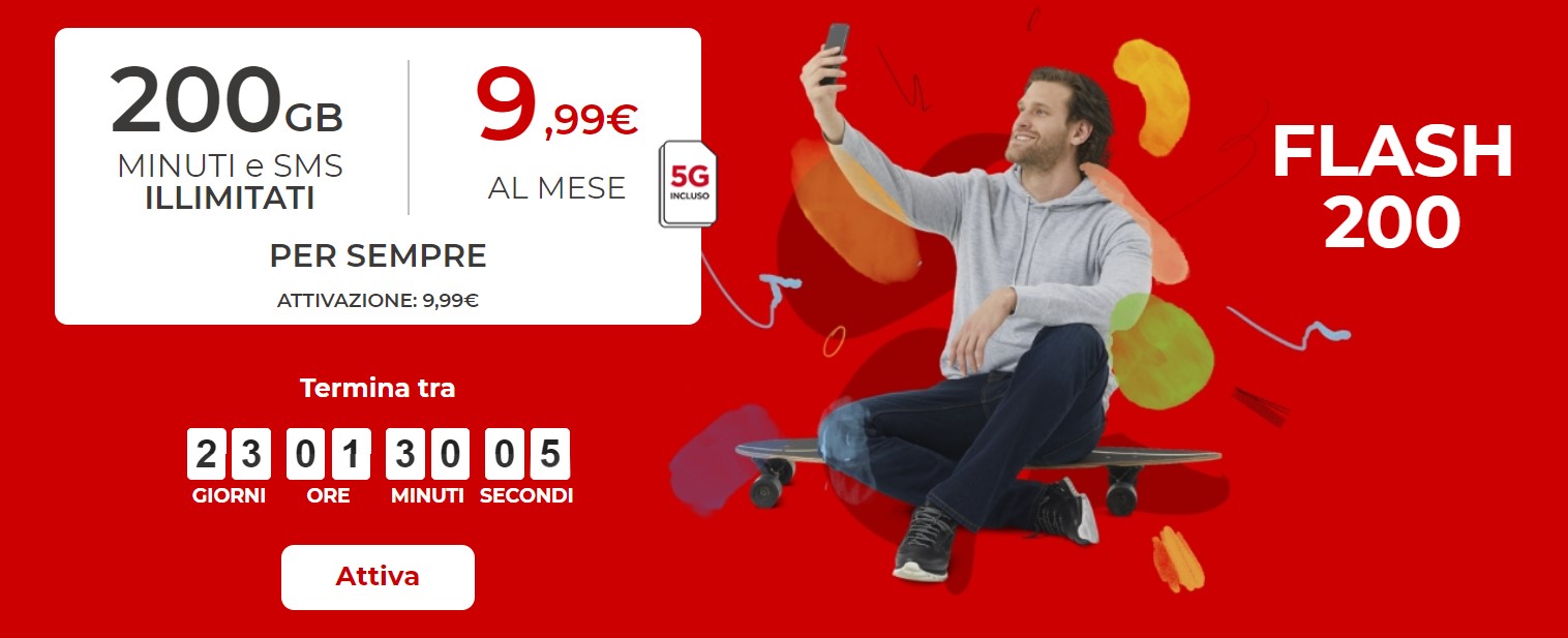 Iliad FLASH 200 è attivabile fino al 15 Giugno 2023.