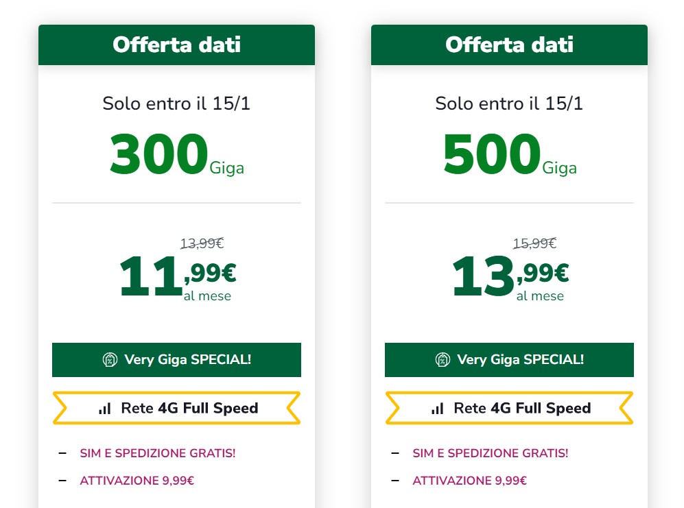 Le offerte sono attivabili entro il 15/01/2024.