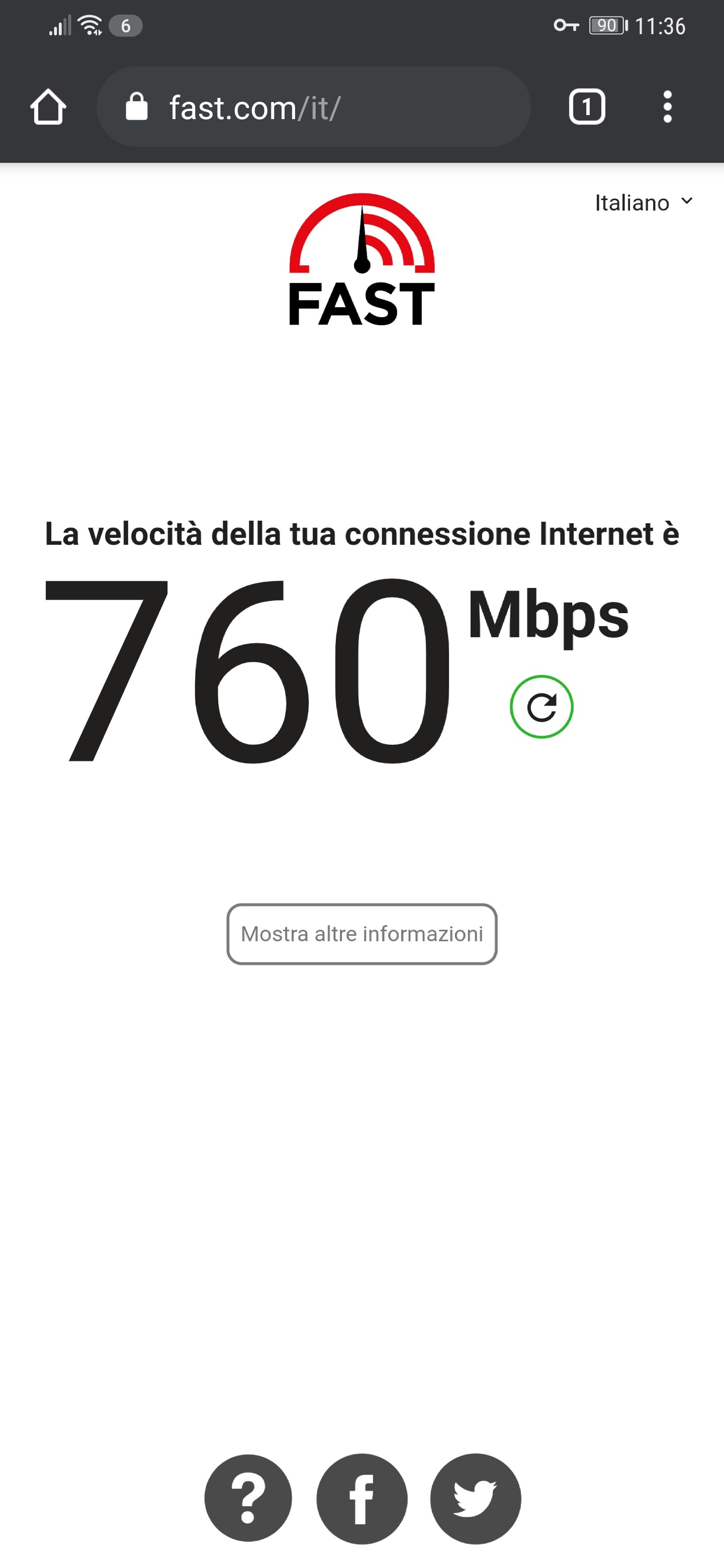 Speedtest effettuato da